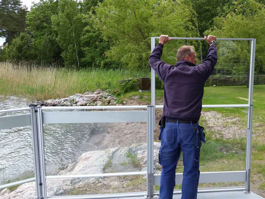 Cit i Lä, höj- & sänkbart glasräcke på Ljusterö